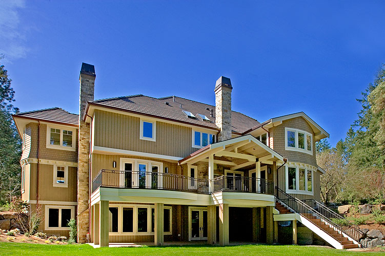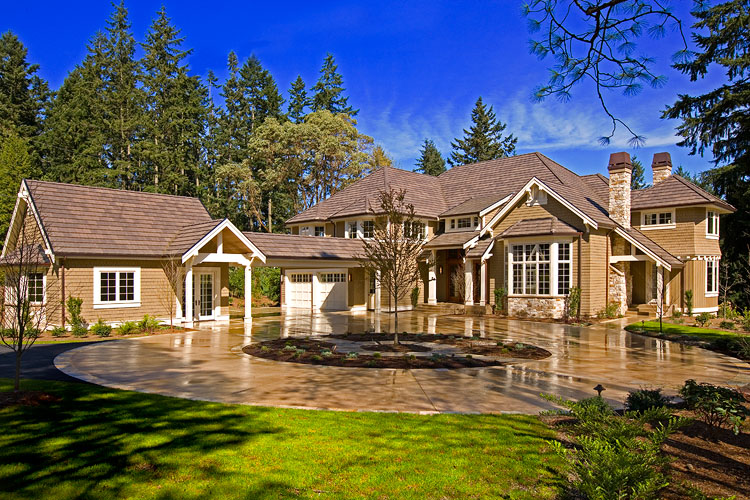 Unique fireplaces, custom cabinetry, built-in bookcases, a fully paneled study, and exquisite glass-pane doors echo the detailed corbels, beams, columns, and pane windows of the exterior, creating a flawless transition between interior and exterior spaces. The estate, located in the heart of Bridle Trails, includes a wine cellar, home theatre, a built-in outside barbeque, twin garages, and beautiful landscape design.