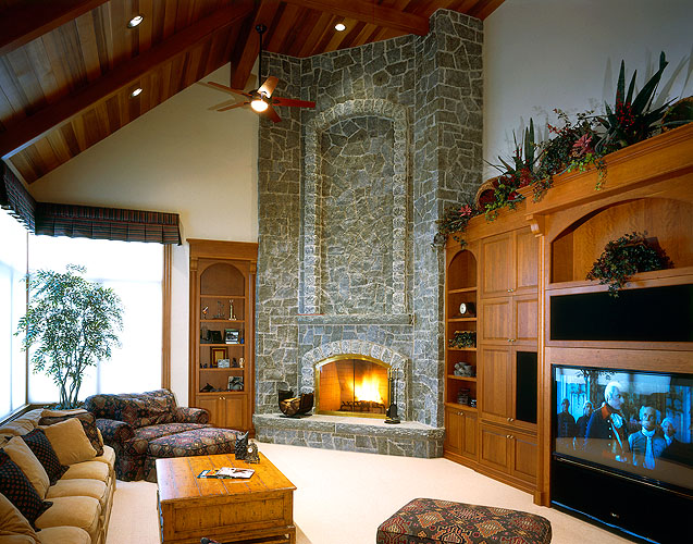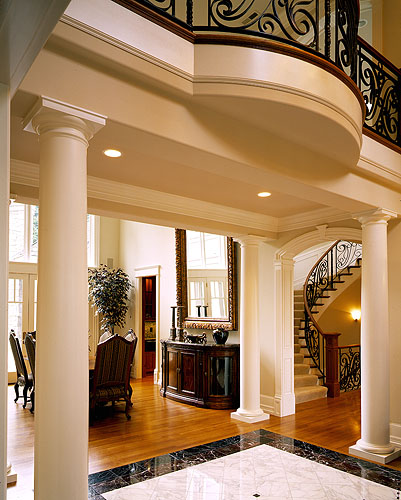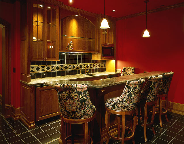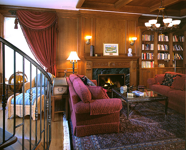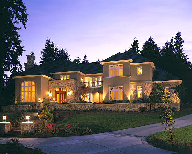 Rich details and soaring spaces create an atmosphere of opulence in this classic European Traditional home. Two wide circular staircases with hand-forged wrought iron balustrades and cherry handrails lead to rooms with cathedral ceilings and a sweeping floor-to-ceiling granite fireplace. Impeccably crafted millwork and moldings, custom cherry cabinetry, and fir and yellow cedar windows add dramatic details to the home, which includes a wine cellar, a club-size steam room, a home theatre, and the mystery of a secret room. The home is fully automated and includes in-floor hydronic heating for comfort, bringing elements of contemporary luxury to the traditional style.