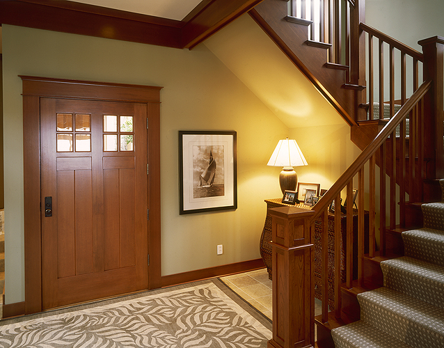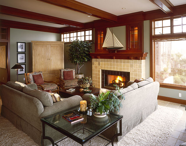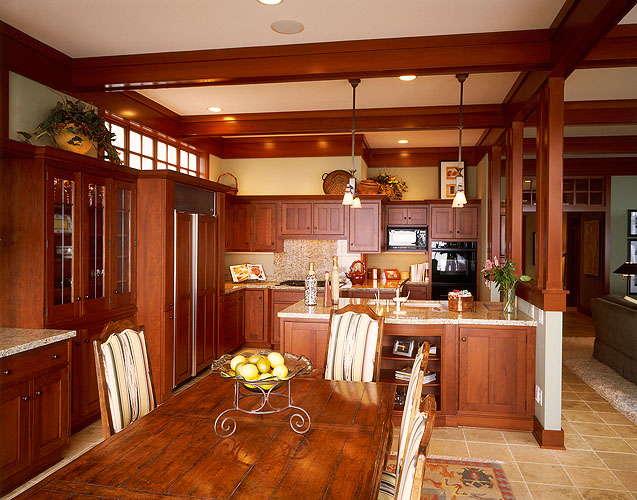 This Craftsman style home sits on a small lot overlooking the beach, with oversize windows, limestone tile floors, an open floor plan, and high ceilings working together to create a feeling of spaciousness. Beautifully constructed millwork, a box beam ceiling, and custom cherry cabinetry lend additional warmth and comfort to this home's interior.